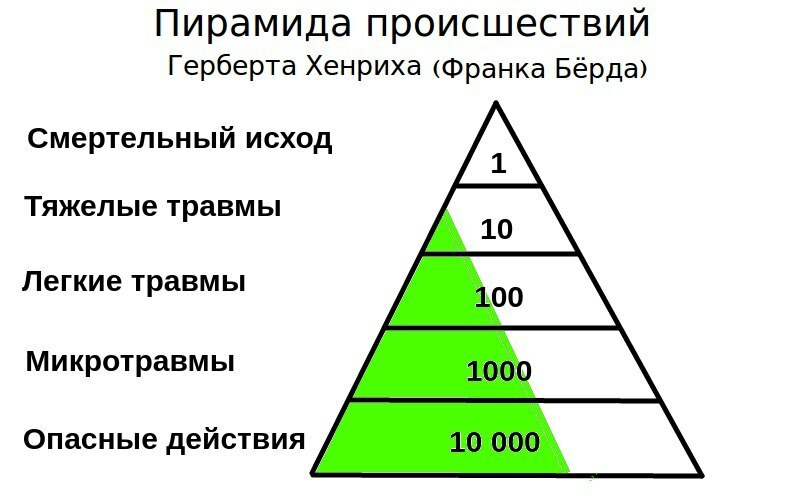 Знаете как борятся с травматизмом на современном производстве?Есть такая штука "пирамида рисков". Числа могут меняться, но возьмем каноничный пример: на 10000 опасных действий приходится 1000 микротравм, 100 легких травм, 10 тяжелых травм и один несчастный случай со смертельным исходом.Хочется срезать верхушку пирамиды. Снизить число легких, тяжелых травм и летальных случаев. В производстве предел всяких средств защиты давно достигнут. Дальнейшее усовершенствование всяческих касок, привязей, страховочных систем и прочего уже фактически себя исчерпало.И эффективный, реально работающий способ один: срезать основание пирамиды. Уменьшать количество опасных действий. И тогда это само собой уменьшит количество и микротравм, и легких травм, и тяжелых, и летальных.